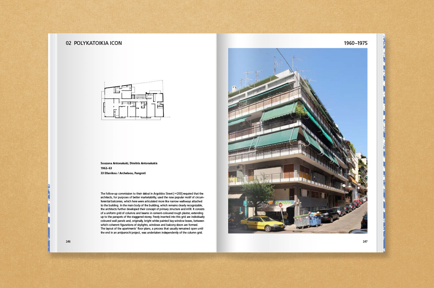This book sets out to trace the architectural origins of this typology. For the first time, it provides a comprehensive examination of the architectural concepts developed by Greek architects for the polykatoikia. 76 innovative apartment buildings dating from 1930 to 1975 are presented with up-to-date photographs, redrawn floor plans, and brief explanatory texts. The selection reveals an astonishing range of concepts, including designs by Dimitris Pikionis, Aris Konstantinidis, Constantine Doxiadis, and George Candilis. In chronological order, the publication depicts the emergence of this architectural type, from the 1930s polykatoikias of the Modern Movement and the early postwar experiments to the iconic polykatoikias of the 1960s. Additional texts explore the evolution of the key architectural features of the polykatoikias and reflect on architects’ ongoing struggles over this housing model.