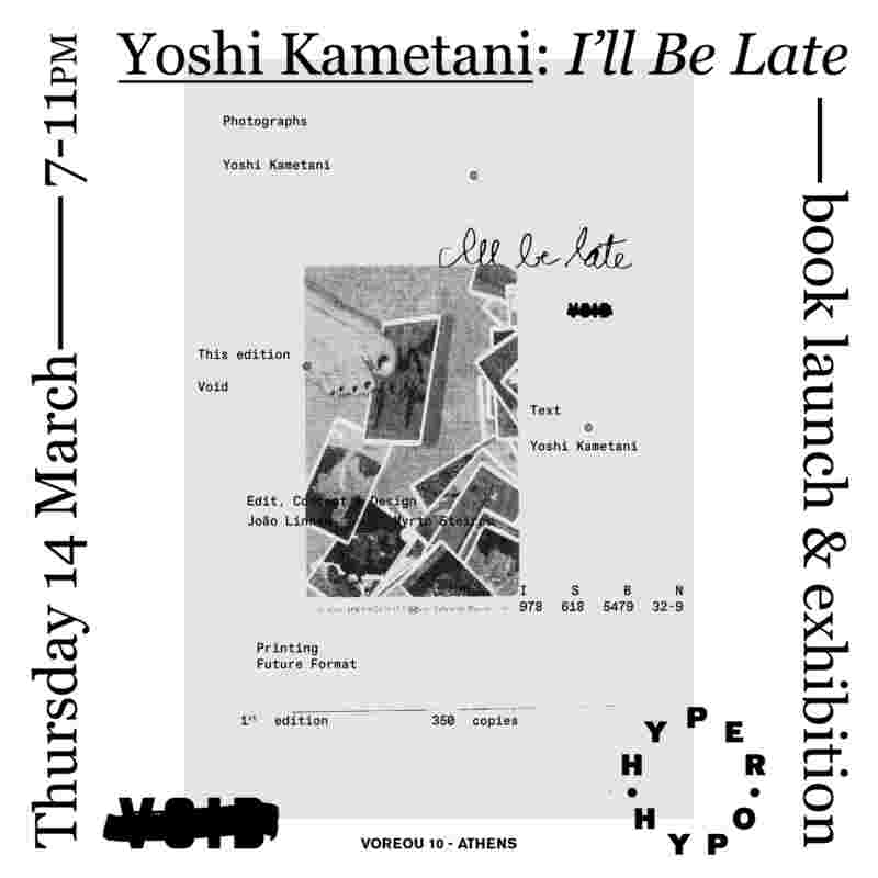 Next Thursday, March 14th, Hyper Hypo and VOID are delighted to present the launch of “I’ll Be Late” by Athens-based, American visual artist Yoshi Kametani.