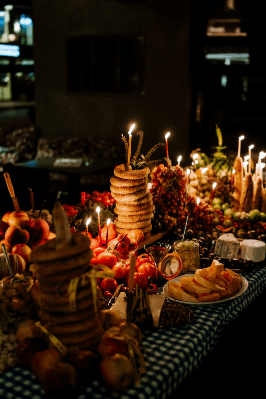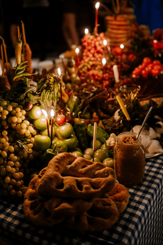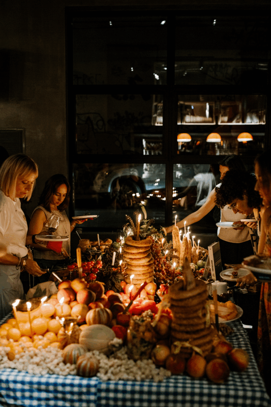 In the OKUPA Kitchen & Listening Bar guests can enjoy wine, Mediterranean-inspired cocktails and an abundant edible tablescape of seasonal fruits, vegetables, cheeses and breads, created by Anastasia in collaboration with Kora Bakery, Jones Family Farm and Honest Toil Olive Oil. Guests can taste everything on site and take the delicious produce home with them! We want the table empty by the end of the night!