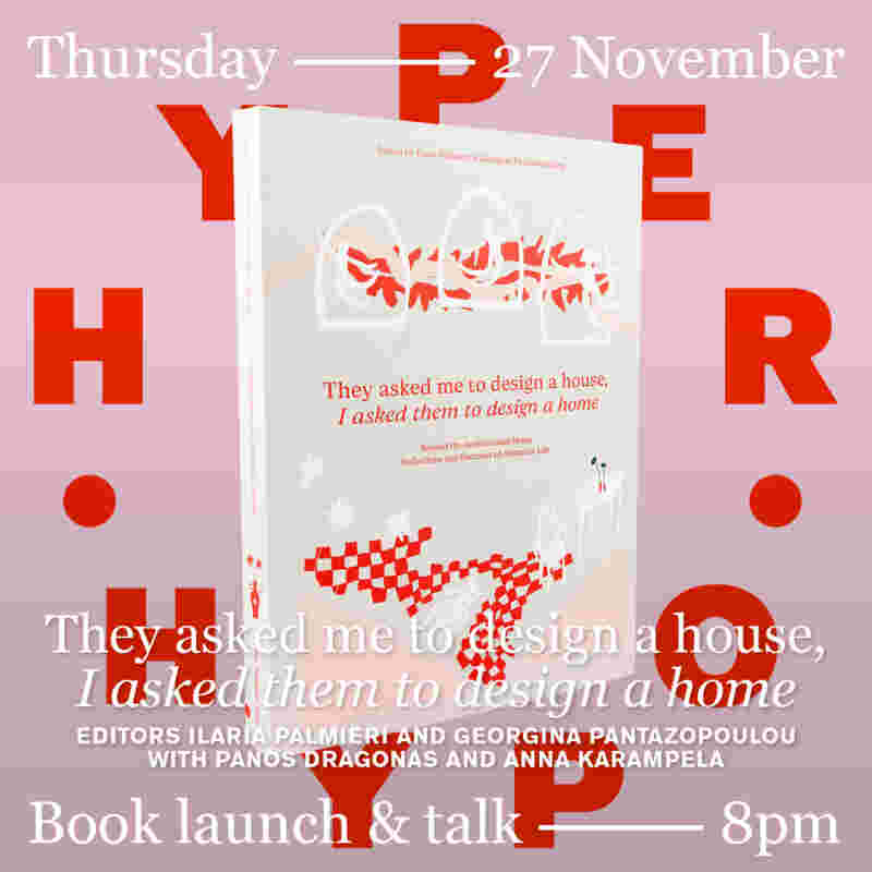 On Thursday, November 27th, 8:00pm Hyper Hypo invites you to the launch of They Asked Me to Design a House, I Asked Them to Design a Home: Beyond the Architectural House. Reflections and Exercises on Domestic Life (Set Margins’, 2025), edited by Ilaria Palmieri and Georgina Pantazopoulou (Common Ground Practice). The evening will include a conversation with the editors, followed by a panel discussion with Panos Dragonas and readings by Anna Karampela (co-text editor and proofreader of the book).